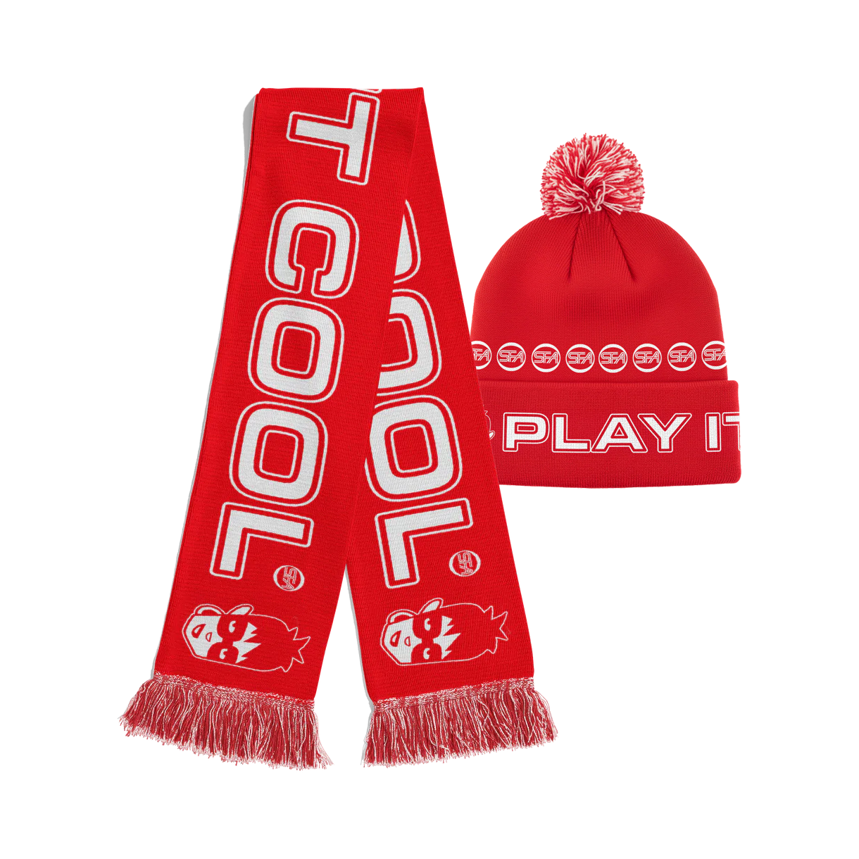 Play It Cool this Yule... in this limited edition scarf and bobble hat combo, inspired by the track of the same name from SFA's 1997 album, Radiator.